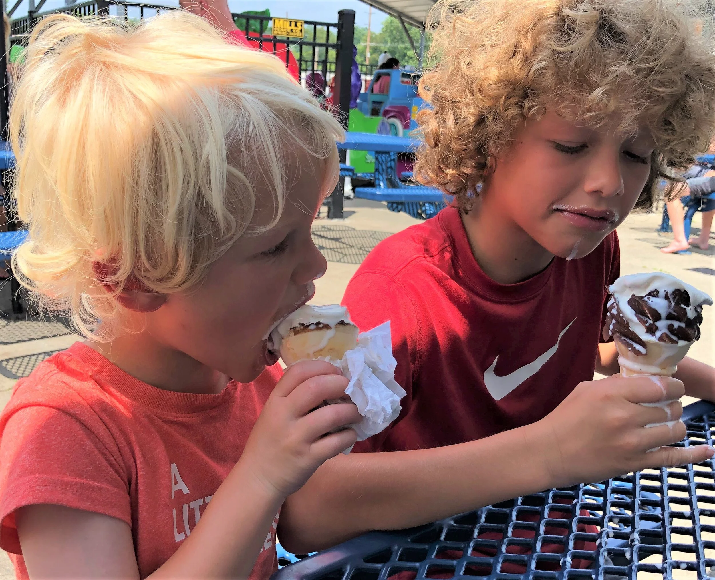 When older brother Oliver’s ice cream cone was placed in his hand and deliciousness was already being enjoyed before HIS had arrived, our 4 year old grandson Lincoln let out a high pitched squeal that reverberated far and wide.